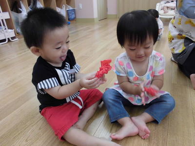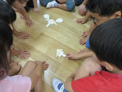 一人一つずつパーツを手に取り、相談しながら形をくみ上げていきます