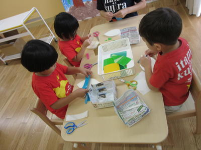 ここからさらにカッティングシートを自由にカットし、みんなで飾り付けていきました