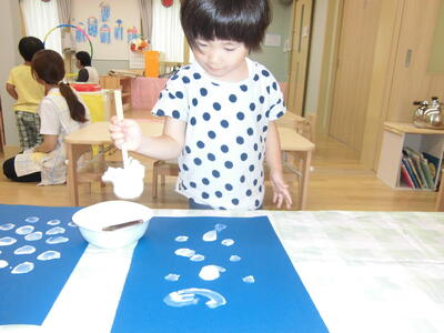 たんぽというスタンプを使って、お団子を表現。
